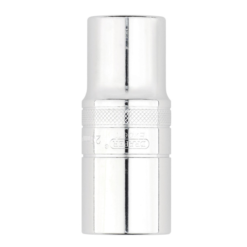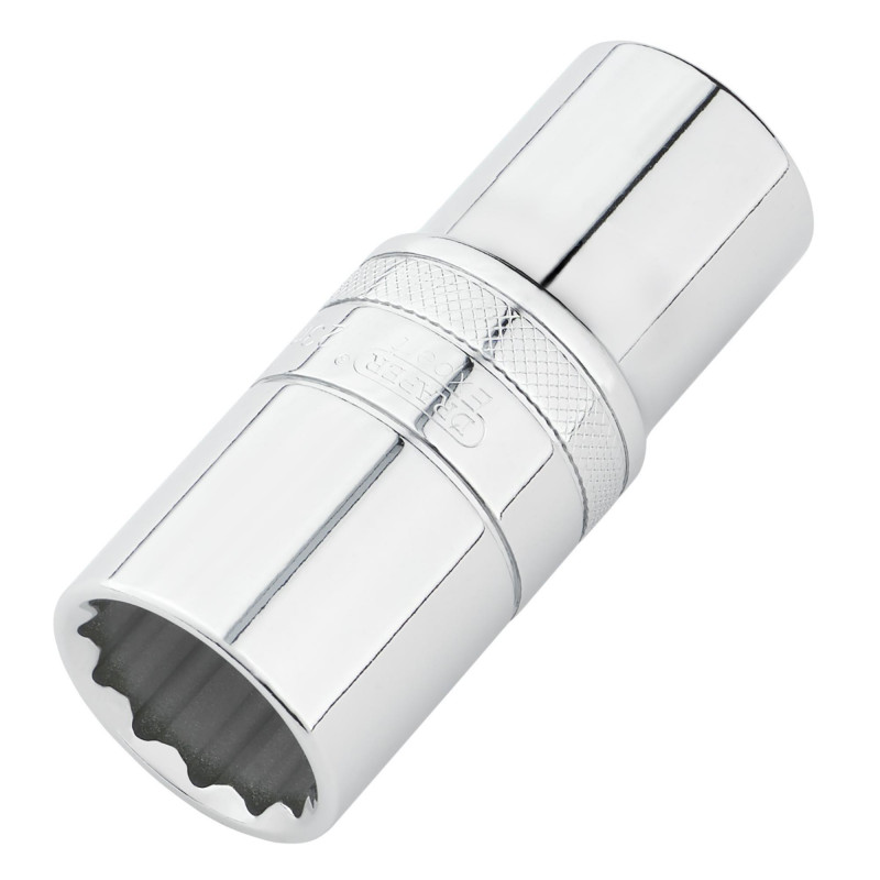 This Draper Expert Hi-TORQ® 12-point deep socket is made from hardened chrome vanadium steel and it has a chrome plated mirror finish for corrosion protection. Each socket includes a knurled ring for enhanced grip.