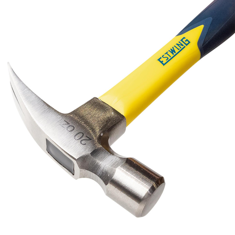 This straight claw framing hammer from Estwing's Sure Strike Series features a fibreglass handle for a lightweight and controlled swing. The rip claw is effective at pulling nails, prying boards, demolition work and splitting wood. The handle is non-slip cushion vinyl grip for a comfortable and durable hold.