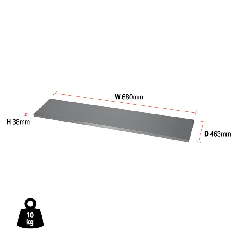All BUNKER® worktops come with a 12-month warranty, extended to 10 years upon registration Durable stainless steel worktop Ideal for use with our 680mm floor cabinet Measures W 680 x H 38 x D 463mm