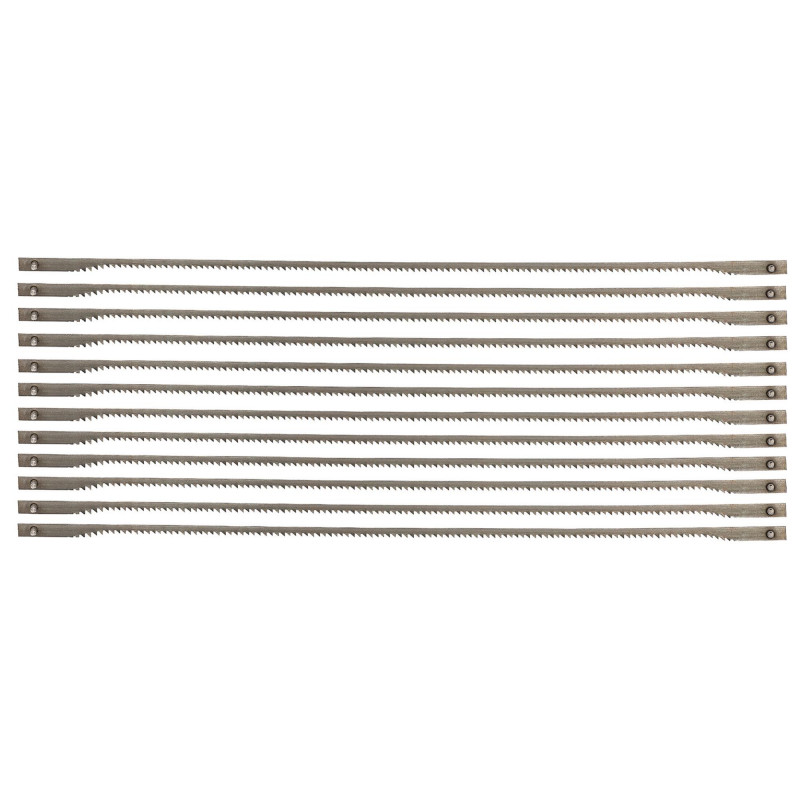 Carbon steel with hardened steel teeth Pin ends at both ends Suitable for cutting wood, plastics, nonferrous metals and most other materials 12 blades per pack
