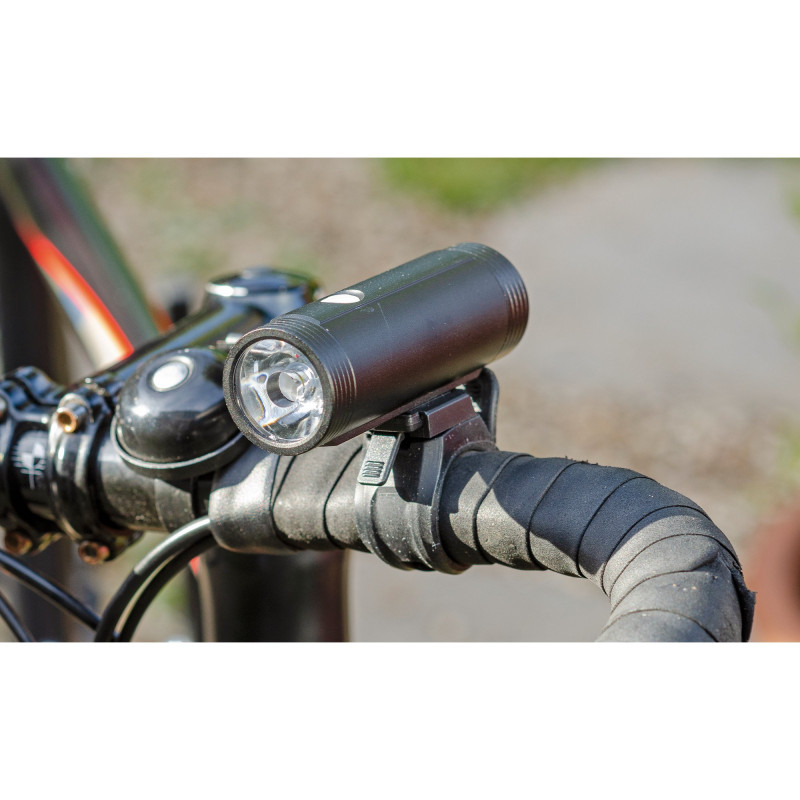 USB rechargeable front light with 10W LED bulb, capable of producing up to 400 lumens x 4 Lighting modes: low, high, SOS and strobe USB-C charging port Run-time up to 6 hours (fully charged) Silicone adjustable handlebar strap
