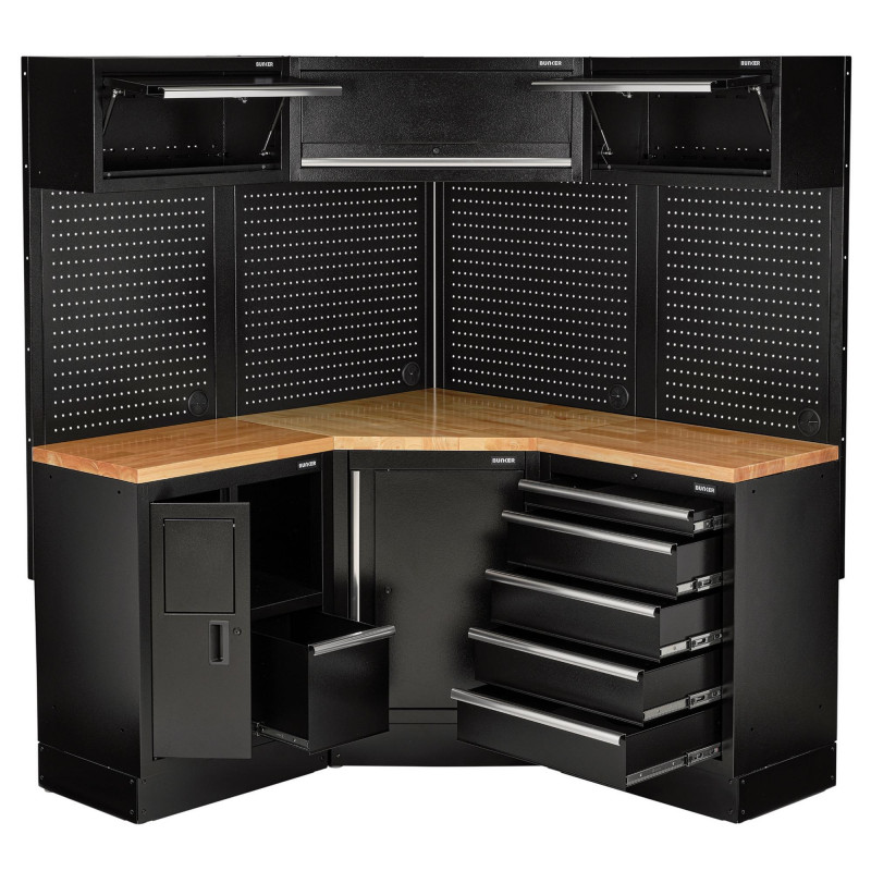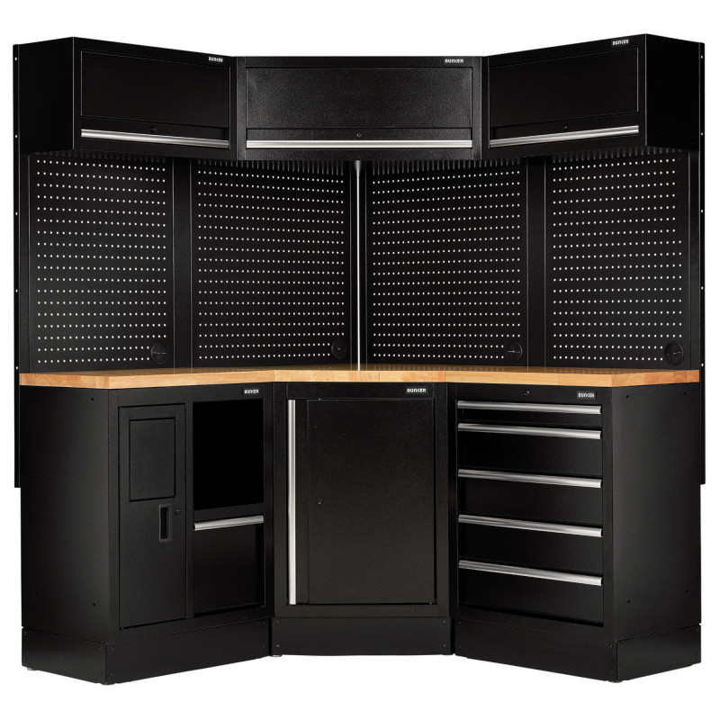Our modular storage corner combo is made from high-quality steel, offering unparalleled performance and durability in any setting, whether it's a garage, workshop, construction site, or beyond. BUNKER® is built to endure, allowing you to focus on your work while we handle tool organisation and security.