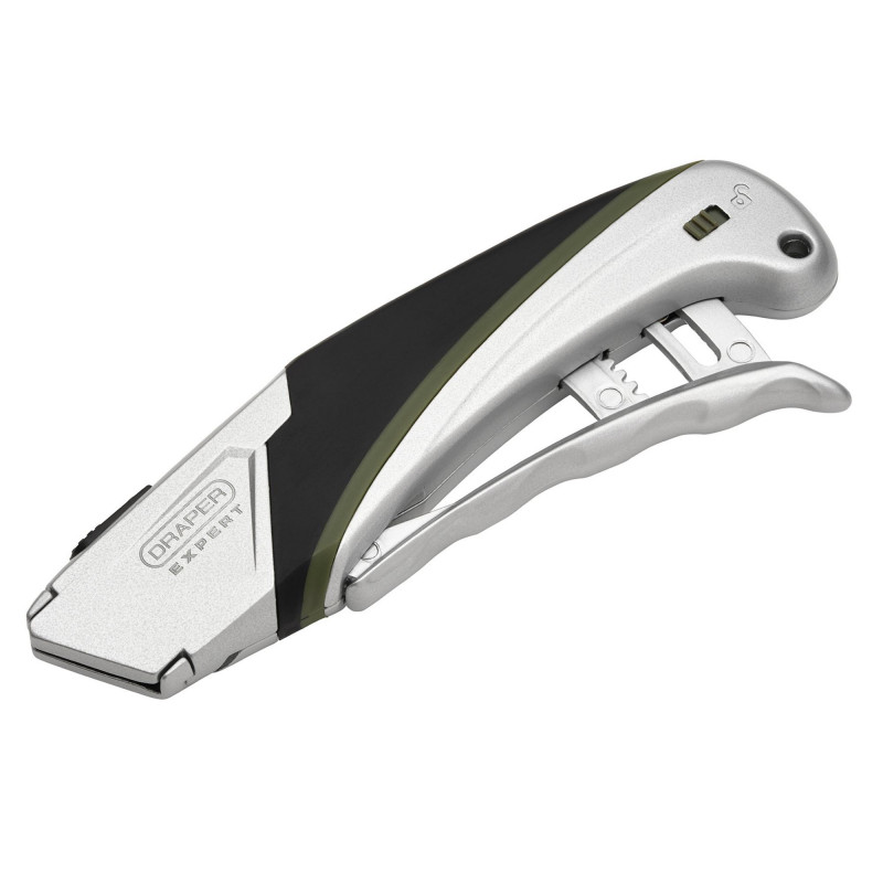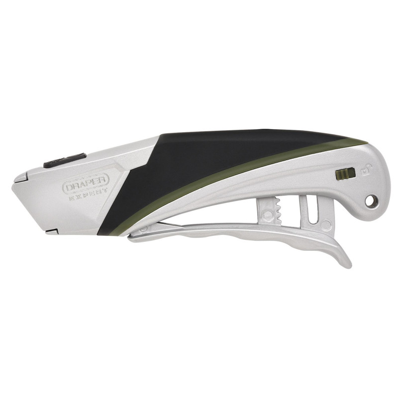 Blade auto-retracts after each cut Rugged zinc alloy body Anti-slip soft grip for comfort and control Quick blade release Blade lock Lanyard hole Replacement blades available - Draper Stock No. 03421
