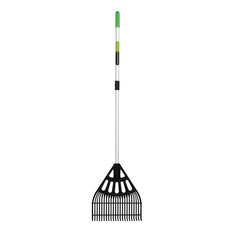 Switch from close-up clearing in hard to reach areas and flower beds to comfortably working on lawns and pathways, simply by extending the handle with a twist of the lock. This is an excellent back saving tool for the taller gardener. The 22 teeth or tines enable the user to clear debris in a more concentrated sweep. The handle, manufactured from anodized aluminium, along with the plastic head mean the tool is lightweight and flexible. Reduce the handle length down again for easy storage.
