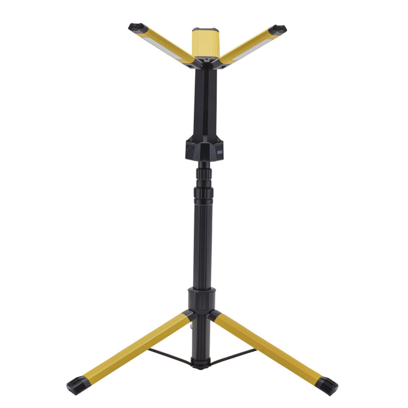 This 2,000 lumens rechargeable SMD LED slim tripod site light creates 180 and 360-degree ultra-bright white or warm light (colour temperature 2,500-7,000K). Portable and easy to set up, the multi-angle rotational light has a beam angle of 66 degrees and beam distance of 55m, and it features high, medium and low settings. The lightweight aluminium tripod is extendable between 0.8m and 1.5m. The detachable light unit is made from die-cast aluminium and toughened glass and has a magnetic base and hanging hook for use where space is limited. The light is suitable for indoor and outdoor applications and is IP65 and IK07 rated. The built-in 3.7V 4,000mAh lithium battery has a runtime of 1.5 hours on 2,000 lumens, 2.5 hours on 1,200 lumens and 4.5 hours on 700 lumens and is rechargeable in five to six hours. The site light features a battery level indicator and comes with a 2m USB charging lead and can be used while it is charging. This site light is part of a wide range of LED site lights available from Draper Tools.