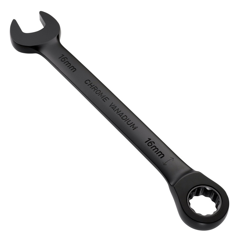 This 16mm Draper Expert HI-TORQ® metric reversible ratchet combination spanner is manufactured from hardened and tempered chrome vanadium steel, with black electroplating for corrosion protection. The 100-tooth ratchet enables 3.6° movement and the open end is set at 15°, making the spanner ideal for use where there’s limited space. The ring end is 12-point Draper Expert HI-TORQ®, providing a superior grip; with Draper Draper Expert HI-TORQ®, the spanner grips the flats of the fastener rather than the corners. This gives more grip while transmitting more torque to the nut or bolt and prevents damage to the corners by spreading the load across the flats. The reversible feature allows change in torque direction without the need to remove the spanner.