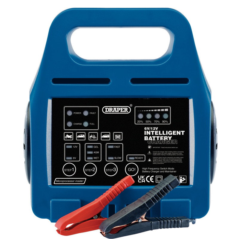 For workshop and home use. Fully automatic with high frequency technology, continuous adjustment for unsupervised charging and microprocessor controlled. Maintains battery in a 100% fully charged state. Features include polarity inversion protection and thermal overload protection. Suitable for wet, AGM and gel batteries between 40Ah and 160Ah. Microprocessor controlled, Supplied with insulated copper leads and battery clips. Display carton.