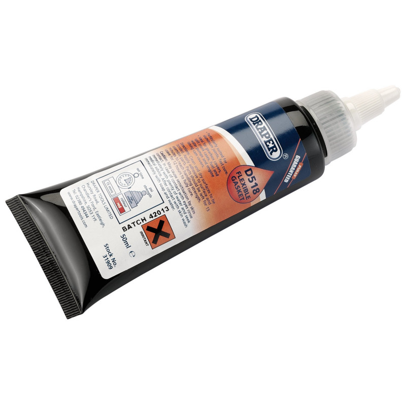 Especially suited for aluminium flanges curing faster than Draper D515 Easily applied flexible gasket paste Forms a tough red gasket once in-place High viscosity paste sealing almost any size and shape Creates an instant low pressure seal and removes the need for paper or cork gaskets
