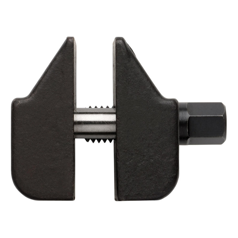 This compact hub clamp spreader tool is designed to hold the suspension split hub open, facilitating the removal and installation of suspension struts. Its double-ended design allows for use on both larger upper split hubs and lower ball joint split joints without risk of damage. Made from chrome molybdenum with a black phosphate finish for durability and corrosion protection. It is compatible with 10mm hand tools and can handle a maximum torque of 13Nm. Suitable for use on vehicles from Audi, BMW, Citroën, Ford, Peugeot, and Volkswagen.