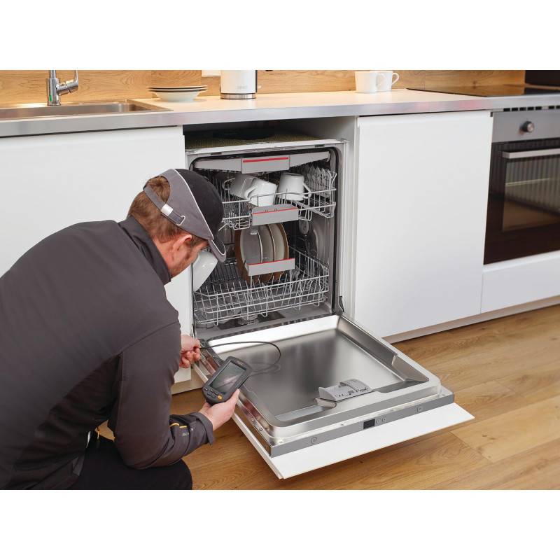 This high-resolution and compact video inspection system allows detailed visual inspection of hard-to-reach locations such as pipework, suspended ceilings and vehicles. Six powerful LEDs on the waterproof camera unit, adjustable in ten settings, ensure effective illumination during use. Details can be clearly captured using the zoom function. Inspection results are clearly identifiable thanks to the large colour display and image alignment. The compare image function allows the user to see the differences between the live image and a saved reference image. Supplied with TopClips, micro-SD card, batteries and a carrying case.