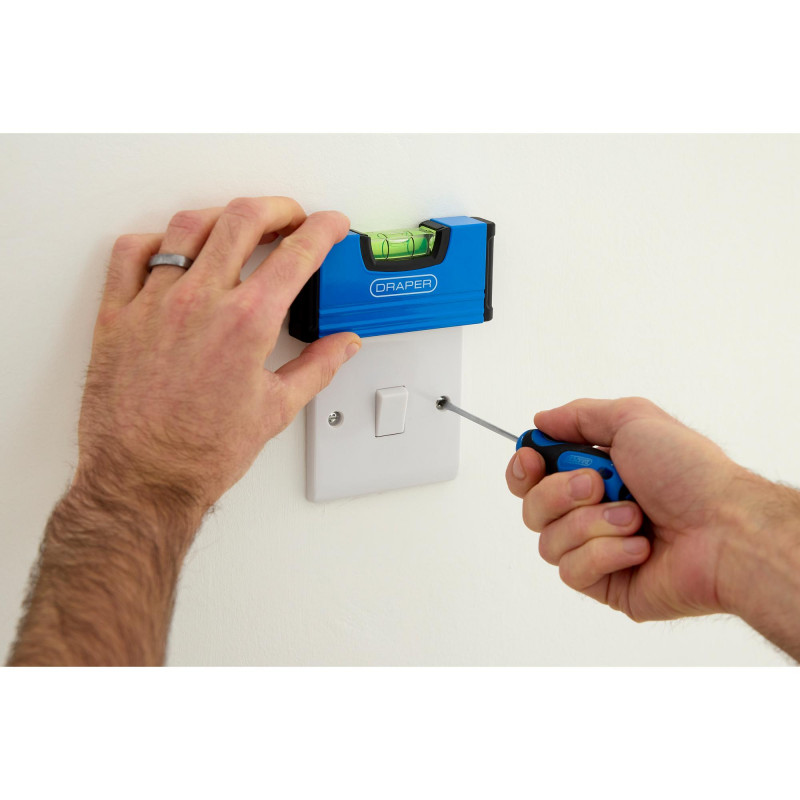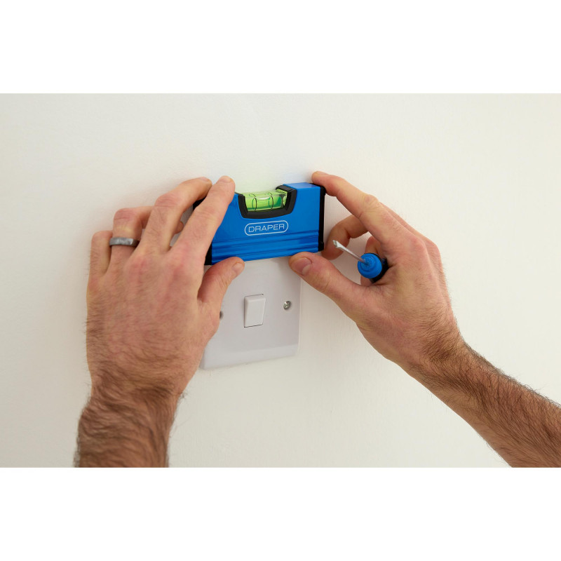 This pocket spirit level is made from aluminum and is equipped with a 180° vial and shock-absorbing end caps to reduce impact when dropped.