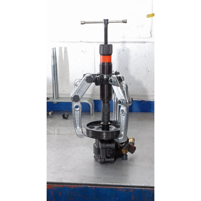 Six position multi-function puller with adjustable two or three leg function. Allows bearings, gears, etc. to be removed with Minimal effort by use of the hydraulic puller. Supplied with instruction manual. Packed in blow mould carrying case with display sleeve.