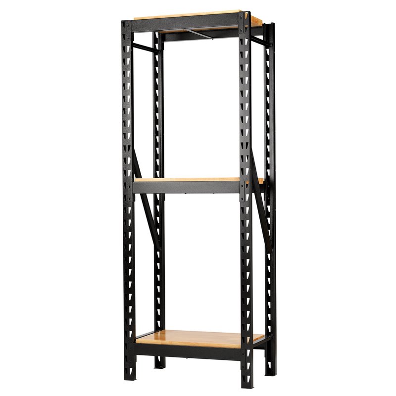 Part of the BUNKER® modular storage range, this 3-tier racking system features hardwood shelving and heavy-duty steel construction for ultimate performance. The high-quality hardwood shelves combine practicality with style, making tool storage and organisation incredibly easy. For easier assembly, it's recommended to have two people assist each other during the process. Measures 750mm. Important Information: Bunker Hardwood Worktops and Shelves Bunker worktops and shelves are made from hardwood and are sealed with a clear lacquer. Wood is a natural material, and no two tops will be identical in appearance. There will be a natural variation in colour, grain and will not be an exact match to any representation in brochures or on websites. Wooden tops are not suitable for use in damp environments and require maintenance to retain and preserve their appearance.