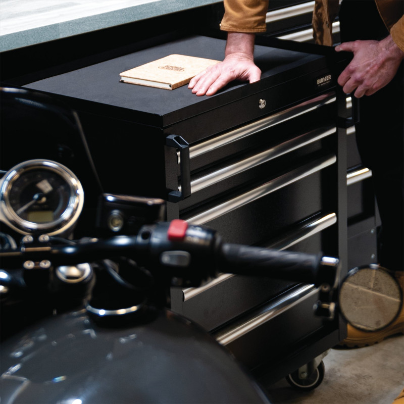 The floor cabinets feature adjustable shelves for enhanced convenience, smooth, soft-close drawers equipped with foam linings for tool protection, and our sturdy stainless steel worktop, providing additional surface area for diverse tasks.