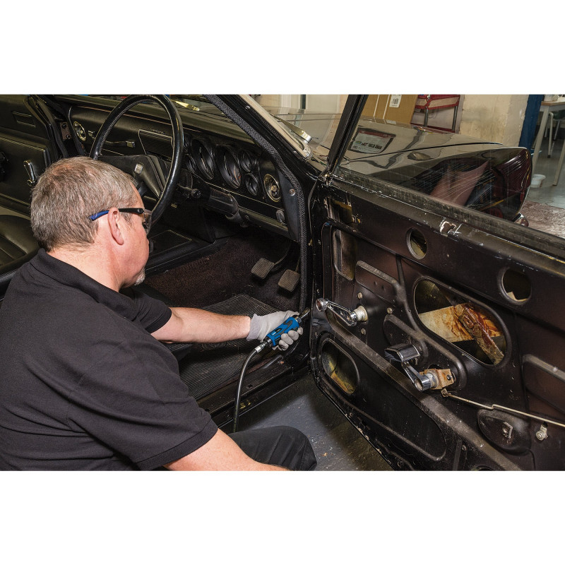 A low noise, low vibration composite body 3/8 stubby ratchet. Fitted with a high tech motor with full cage gear and needle bearings, simple forward/reverse lever and rotating air inlet for user comfort.