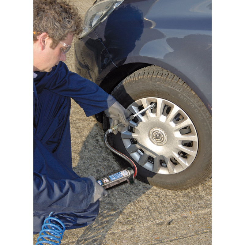 Improved MK4 version airline inflator Industrial quality suitable for use on garage forecourts and tyre fitting bays Fitted with a twin open ended connectors, 20% larger viewing window, hardier yet lighter body and increased accuracy Supplied with calibration certificate