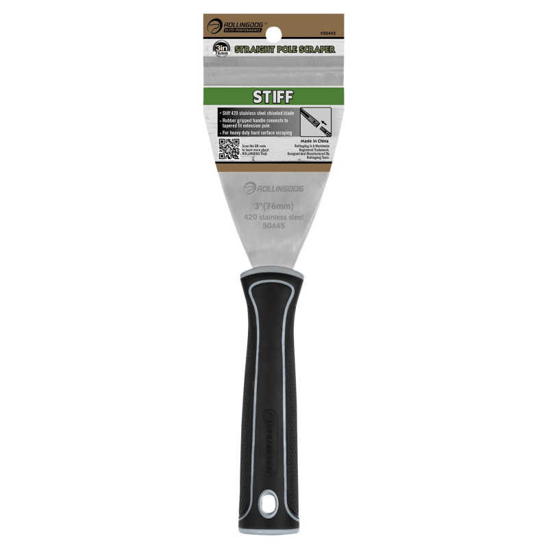 This pole scraper from ROLLINGDOG has a rigid stainless steel chiseled blade designed for heavy-duty surface scraping. There is a soft grip handle for comfort during use. Compatible with SECURE-CLICK™ tapered fit extension poles.