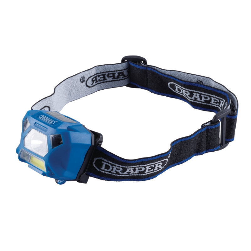 3W COB rechargeable headlamp with two function switch; the first function delivers High/Low/Strobe lighting and the second function delivers COB High/Low lighting, produces a 200 - lumen output, also fitted with a hand movement sensor for easy operation. Charged via a micro USB cable. Manufactured from a shock resistant plastic and fitted with an adjustable elasticated headband. Supplied with a micro USB to USB cable.