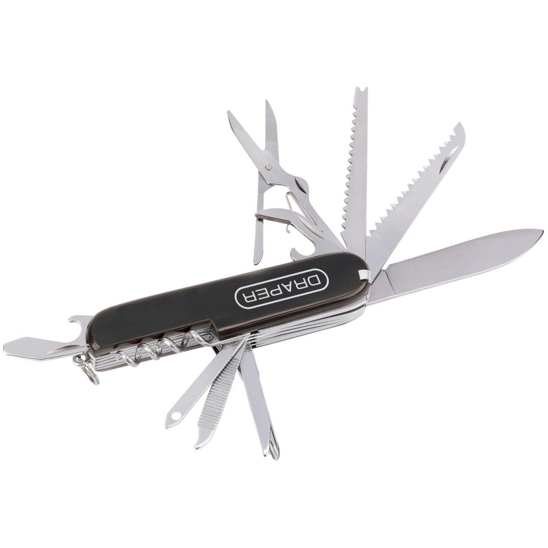 • Many functions including penknife, screwdriver blade, scissors, can opener, corkscrew and much more