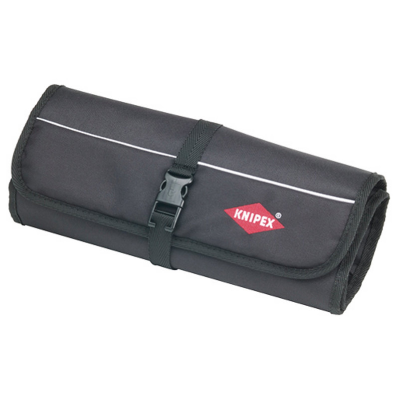 00 19 56 Set of Circlip Pliers Tool roll made of hard-wearing polyester fabric. With practical, adjustable quick release fastener. Dimensions, open (L x H): 315 x 275 mm. Four common Circlip Pliers for internal and external circlips. Content: 1 x 44 11 J2 KNIPEX Circlip Pliers for internal circlips in bore holes (Ø 19 - 60 mm), 1 x 44 21 J21 KNIPEX Circlip Pliers for internal circlips in bore holes (Ø 19 - 60 mm), 1 x 46 11 A2 KNIPEX Circlip Pliers for external circlips on shafts (Ø 19 – 60 mm), 1 x 46 21 A21 KNIPEX Circlip Pliers for external circlips on shafts (Ø 19 – 60 mm),