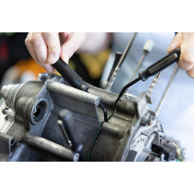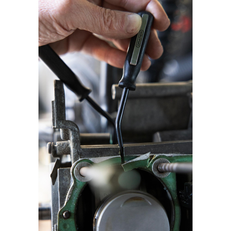 These pocket-sized mini pry bars are perfect for separating small components and disconnecting electrical clips. The set includes one straight bar and two angled bars, with angles of 27° and 55°. The angled blades provide better access when needed. The blades are made from chrome vanadium steel and have a black oxide finish for corrosion resistance. They are equipped with comfortable plastic handles fitted with a convenient pocket clip.