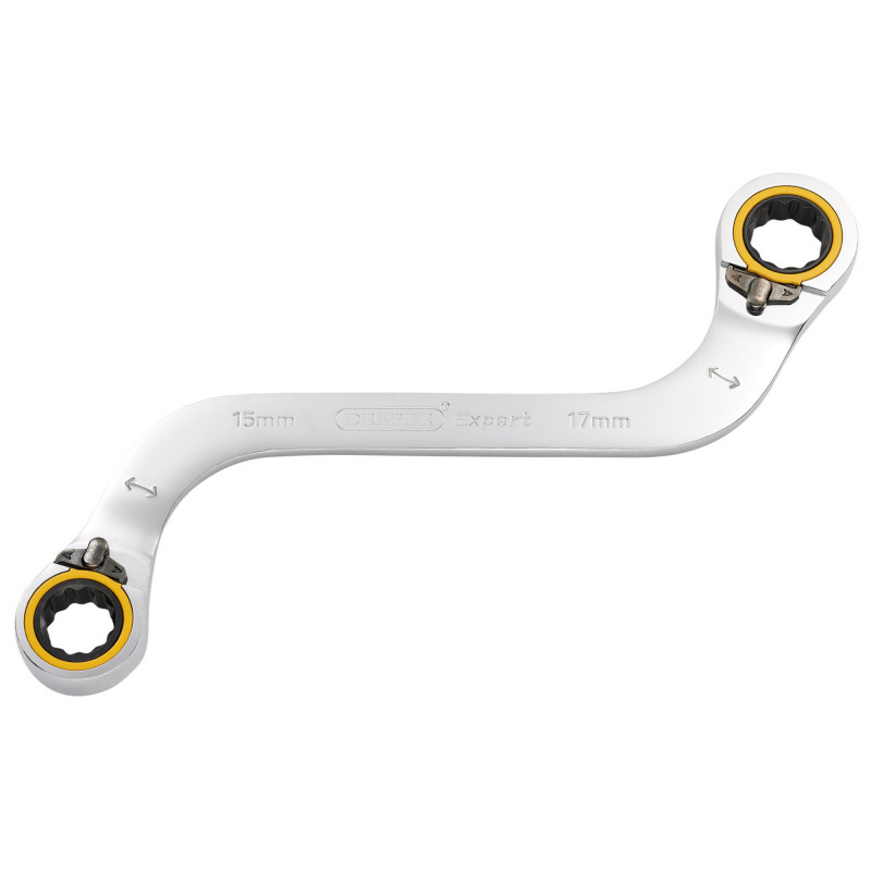 1 x Draper Expert HI-TORQ® Double Ring Ratchet S-Shape Spanner, 15 x 17mm
