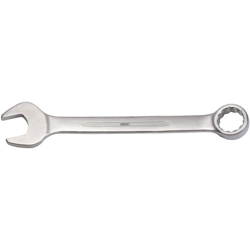 Heavy duty long pattern, fully drop forged chrome vanadium steel hardened, tempered and chrome plated. Polished ring end offset at 15°. Jaw offset at 15°. Sold loose in polybags with barcode label.